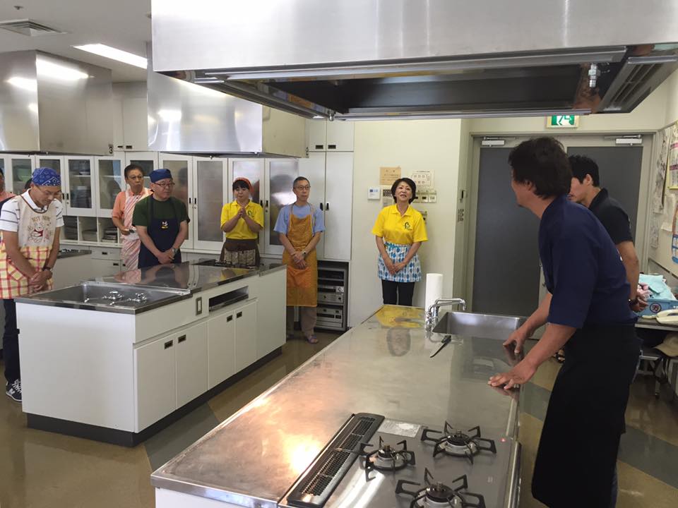 家庭でも魚をさばいて料理をしてもらいたいという主旨で、参加者は男性ばかりでした。